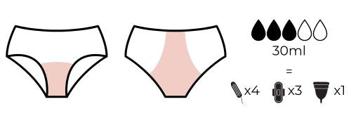 Chaque culotte a une capacité différente en fonction de votre débit ou de votre perte d'urine :
